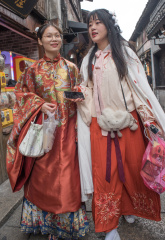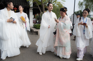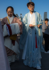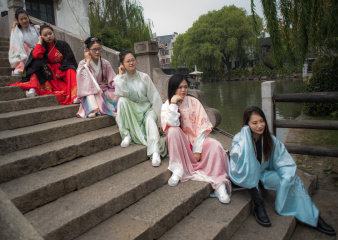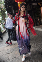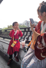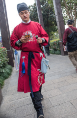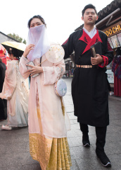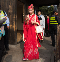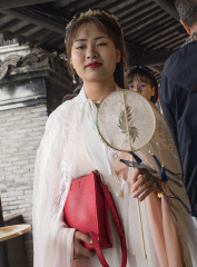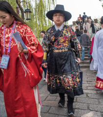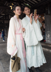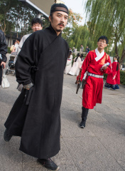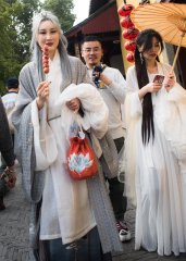 浙江嘉善每年十月都在西塘举办汉服文化节,为期一周。今年是第七届。我去嘉善访友,顺便去观看了汉服节。 好不热闹,全国各地,男女老少,来了数千人。他们一般都是身着全副汉服行头,或乘飞机或乘高铁来到西塘。一路上非常拉风,强吸眼球。在汉服节现场更是千姿百态,争奇斗艳。 我算是大饱眼福,手中的相机可是忙坏了,快门响个不停,记录下不少有趣的人物。