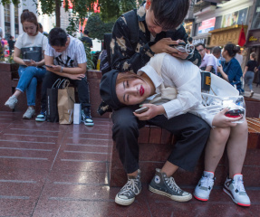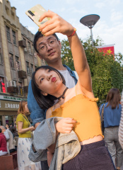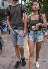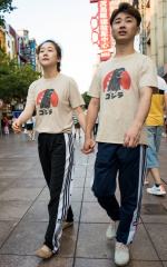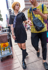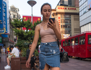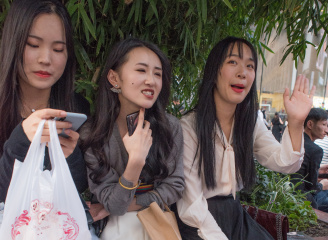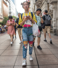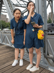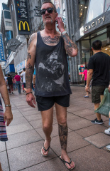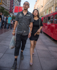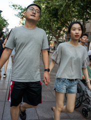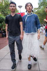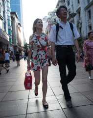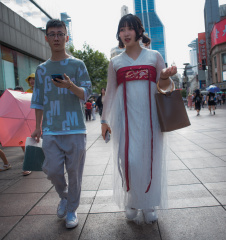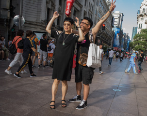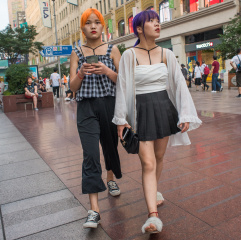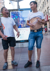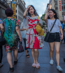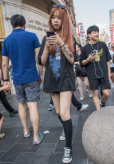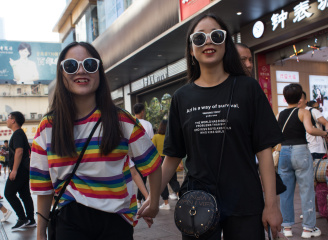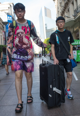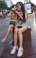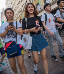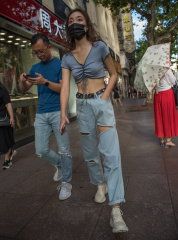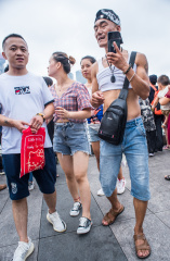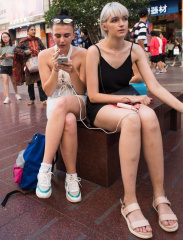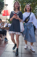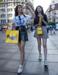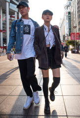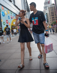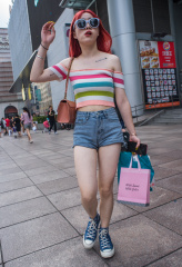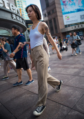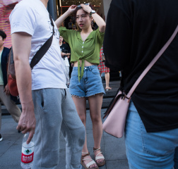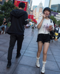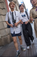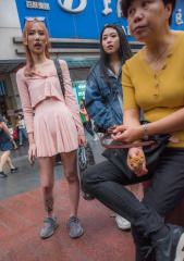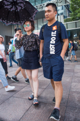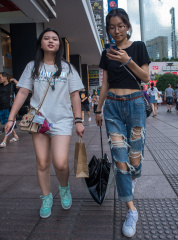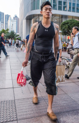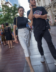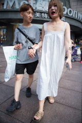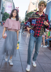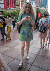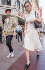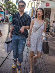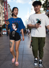 魔都街头靓丽光鲜的美女很多,但不少男生显得有点猥琐。