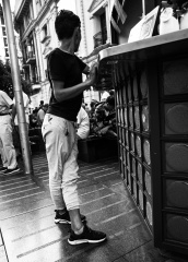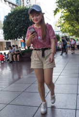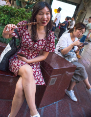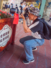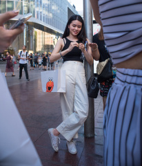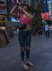余以为,街拍如同猎杀游戏,要有一点英雄气概,其最高境界为: 一、气势上要像关云长,万军之中取上将首级,如囊中探物。切忌偷偷摸摸,鬼鬼祟祟,自觉理亏。 二、手法上要像非洲黑豹,不动声色,找准时机,果断出手,一剑封喉,迅速撤离。切忌优柔寡断,畏缩不前。