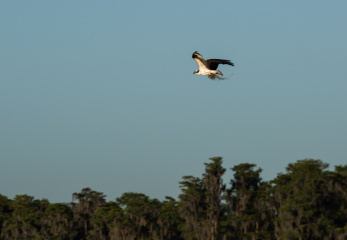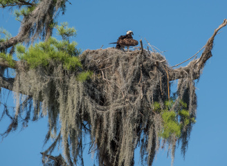 摄于美国佛罗里达州奥兰多市。湿地天蓝蓝,水清清,里面老鹰特别多,说明生态保护的非常好,人与自然和谐相处。