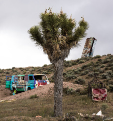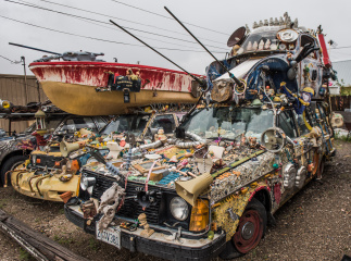 美国拉斯维加斯赌城附近有个小镇叫Goldfield(金地), 曾经是淘金圣地,繁荣昌盛。金子淘完后便没落下来。衰败的土豪们于是利用废弃的豪车玩起了艺术。来吸引游客,另谋出路。这种创举产生出一种颓唐的美感。